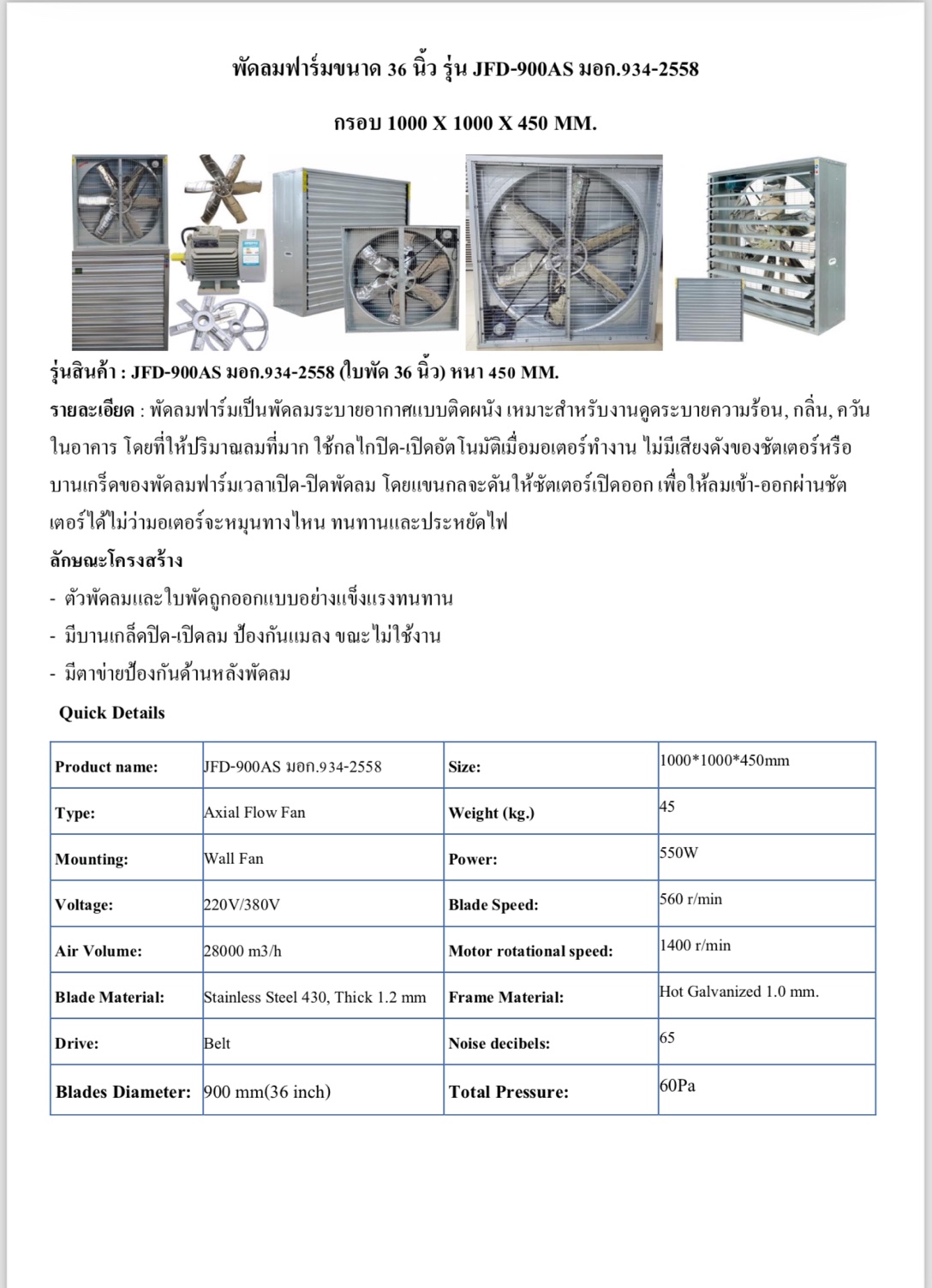 มาสเตอร์แฟน ซัพพลาย แอนด์พาร์ท จำหน่าย พัดลมฟาร์ม 36 นิ้ว รุ่น JDF-900HE รองรับมาตรฐาน มอก. 934-2558