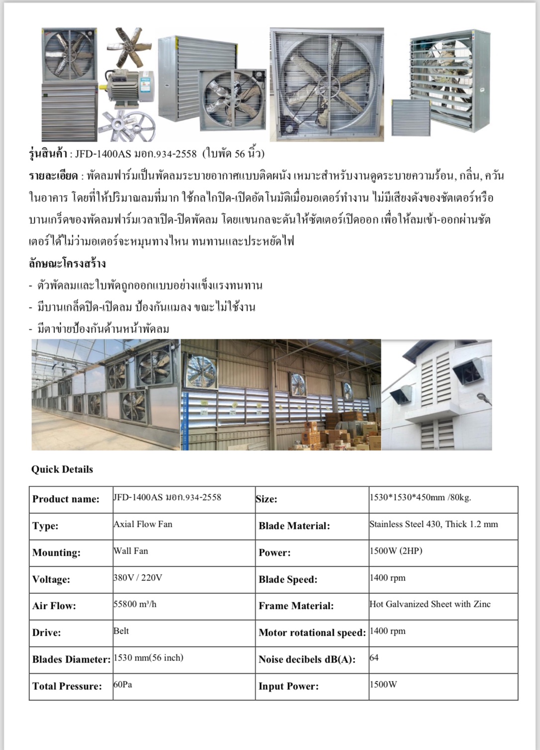 มาสเตอร์แฟน ซัพพลาย แอนด์พาร์ท จำหน่าย พัดลมฟาร์ม 56 นิ้ว รุ่น JFD-1400AS ชัตเตอร์เปิดปิดอัตโนมัติ
